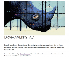 I forbindelse med opsætningen af Jens Raschkes prisvindende teaterstykke: ”Kva nashornet såg"  tilbød Det Norske Teater en fysisk og oplevelsesbaseret dramaworkshop som introduktion til stykkets centrale temaer og problemstillinger.